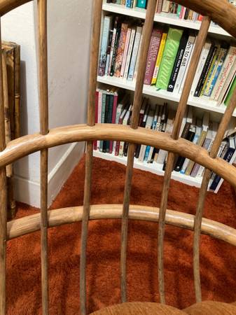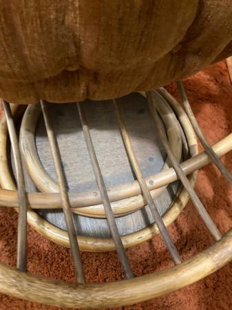 This boho chic chair in the Paul Frankl-style features a natural finish egg-shaped frame with a barrel back and rounded arms to provide the ultimate comfort.