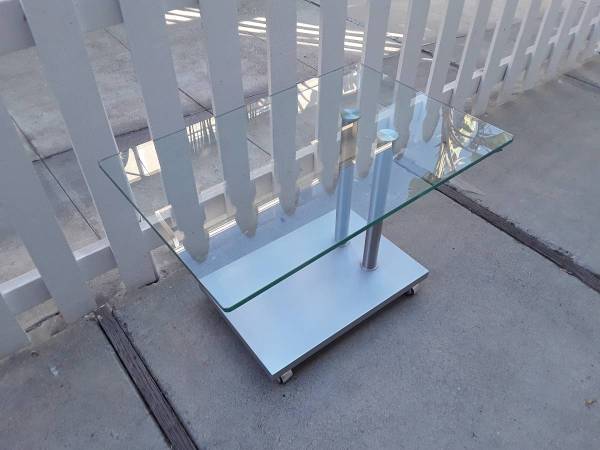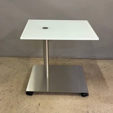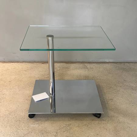 Vintage Ronald Schmitt? Chrome Glass Cantilevered Accent Table -...