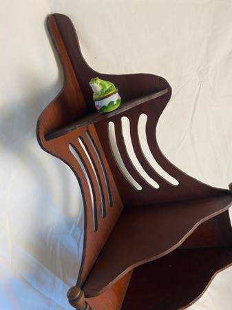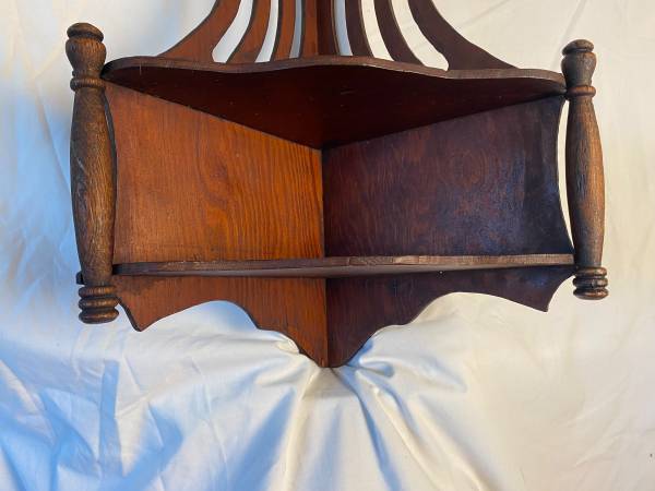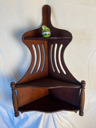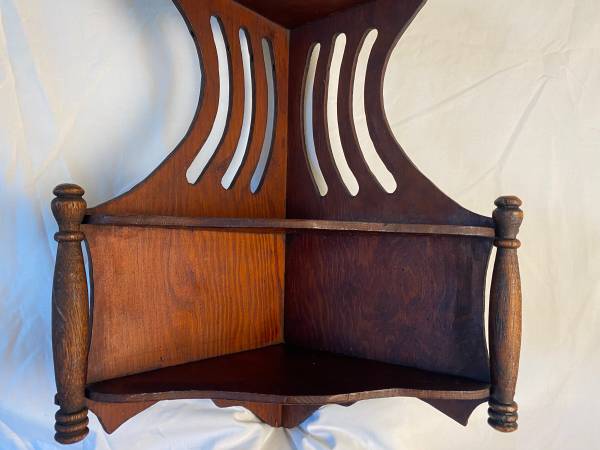 Beautiful, elegant. This corner rack has come from a 1911 house where 3 generations lived in the Fairfax area. We do not know how old it is but it brings the sense of a gilded era. It may last several more decades because the beauty is sturdy, stable, hardy and well cared for!