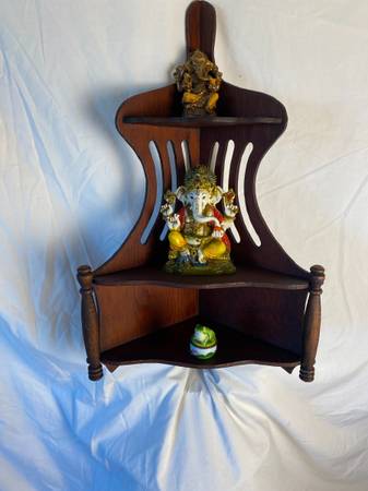 From Grammas Collection, we have this gorgeous vintage shelf / display for your deities, gems or curios. Lavishly styled and carved. So elegant are its lines and curves! Very easy mounting. Instructions on pick up.