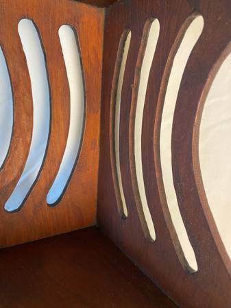 We cleaned this from top to bottom, we restored its beauty and luster and we oiled it to shine. This stand/shelving unit/altar is clean and ready to grace your home, balcony, or garden. No gouges, no nicks, no wobble, nothing to repair. Comes from a non-smoking facility with no pets nor kids. We take very good care of our stuff and pass our high standards to your benefit.