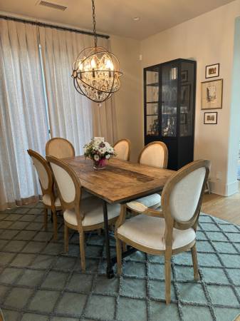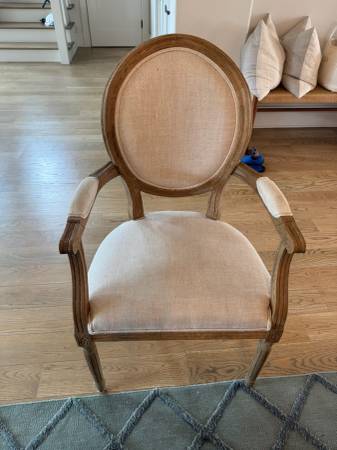 Restoration Hardware Vintage French Round Fabric Dining Armchair- (2) ; Restoration Hardware Vintage French Round Fabric Dining Chair (4) - Set of Six. Excellent condition. Some minor spot cleaning required.