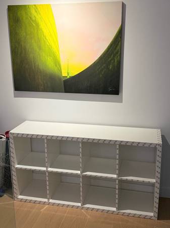 The high-gloss white KALLAX finish has been discontinued and is rarely available secondhand in clean condition. It coordinates with the IKEA LACK series and modern interiors, and the glossy acrylic front gives it a more elevated look than the standard matte white.
