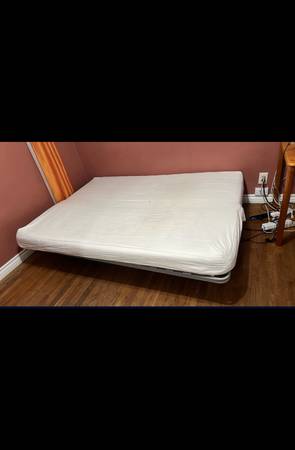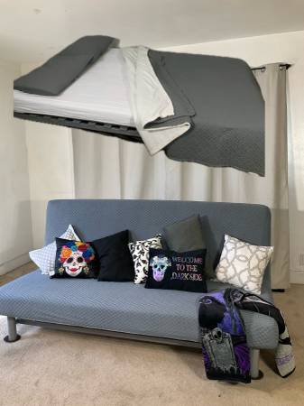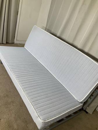 Perfect for when you need a bed but don’t have a lot of space, or for unexpected overnight guests. Whether in your living room, home office or guest room, it provides a convenient, comfortable place to sit and sleep without a dedicated bedroom. Super easy to set up and more comfortable than an air mattress. Metal frame sleeps two adults up to 400 lbs. Includes two covers (white and gray) for versatility, plus the mattress’ cover is removable for washing. Very good clean condition. Hablo español.