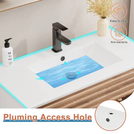 FOR SALE: Vanity Ceramic Top, Sink and Faucet ONLY - BASE NOT INCLUDED. Exact measurements: 35.4" x 17.7" BRAND NEW - 2 AVAILABLE. GREAT DEAL! Please see link on Wayfair for photos of the top, sink...