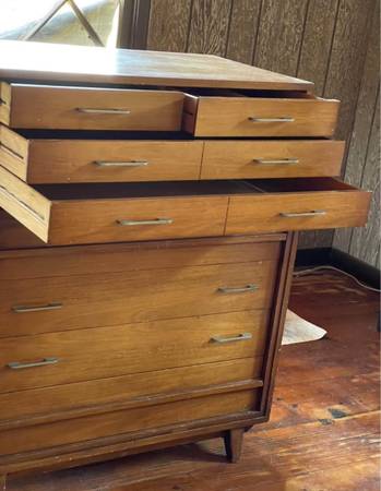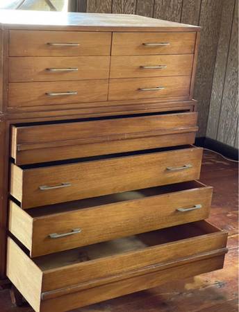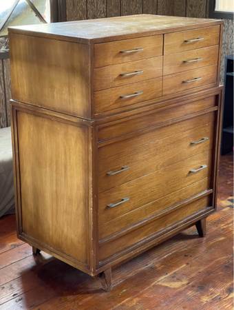 R-Way Mid Century Honey Walnut 7 Drawer Highboy Dresser.