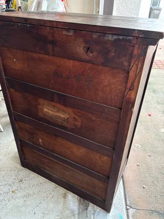 Historical piece Very old but solid with all working drawers ! Imperial Co manufacturing Co in Iowa .. beautiful dresser very Restoration Hardware looking 41 1/2 inches tall 30 inches across 19...