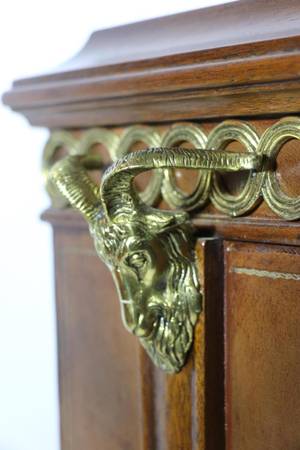 Maitland Smith Mahogany Octagonal Hooved Stand with hand tooled leather. 26 x 20 x 20