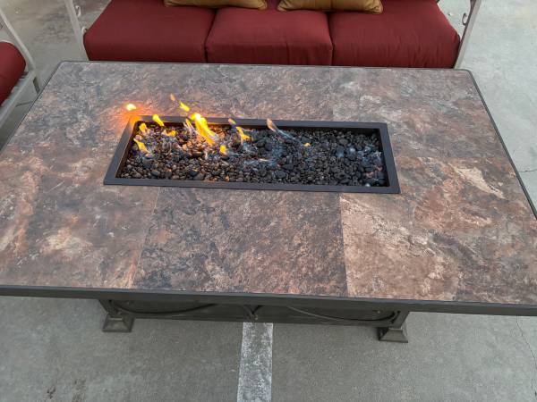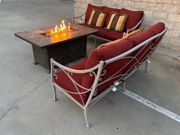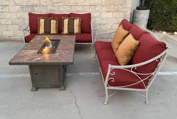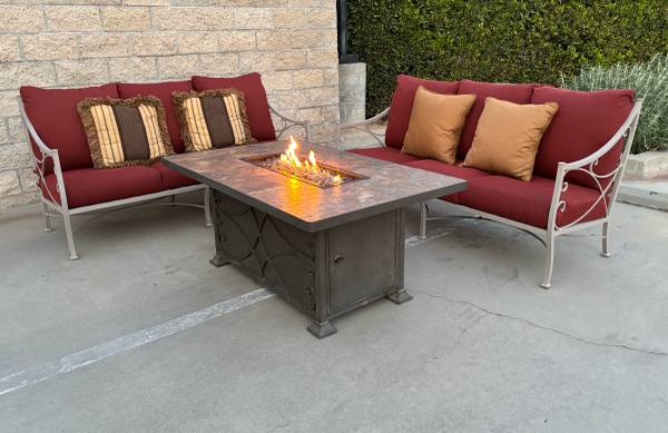 Fire pit, fire pit table fire table, ow Lee fire pit, ow Lee fire pit table, Vintage, patio, outdoor, Brown Jordan, Ow Lee, O W Lee, O.W Lee, Woodard, Thinline, Janus et Cie, ow Lee sofa, outdoor sofa, patio sofa,