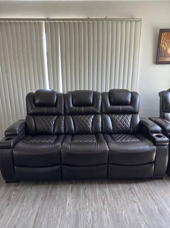 Furniture is like new.Very nice leather.I bought it in Ashley store.Now I am moving and I want to sell it