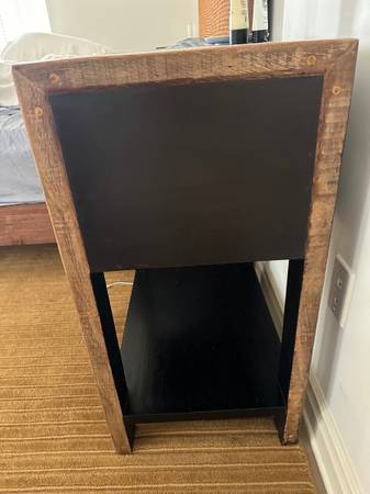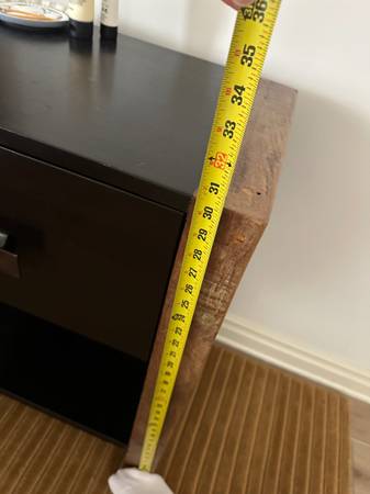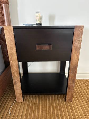 $150 for both. Solid wood nightstands. Has some scuffing but can be buffed, repainted etc.