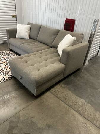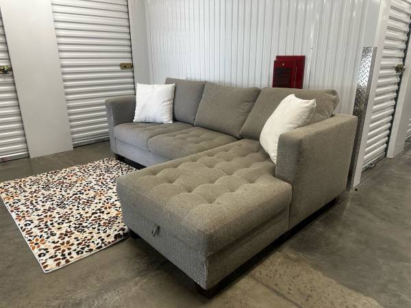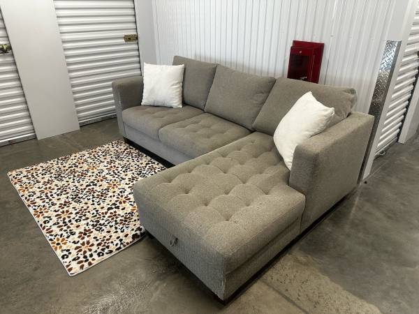 I have a very nice and comfy grey tufted sectional couch that comes with storage under the chaise There are light scuffs on the bottom corners There are no major damages Nothing broken Very comfy...