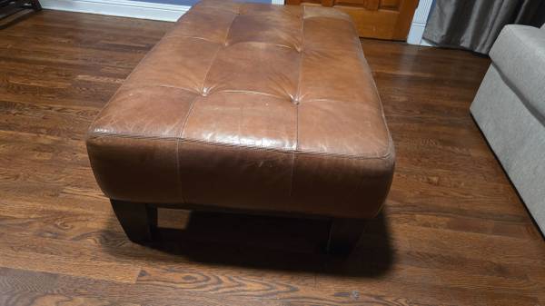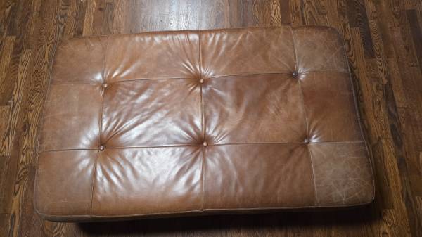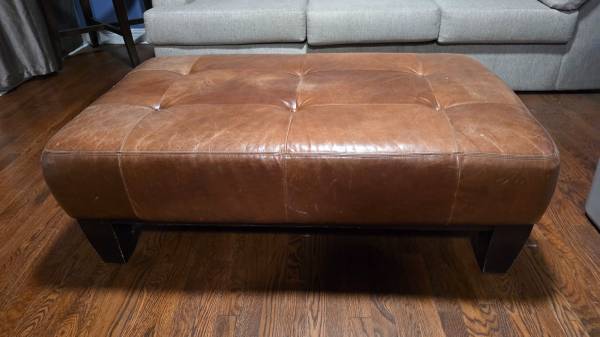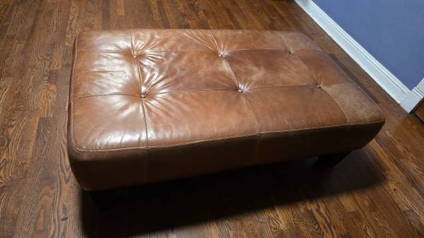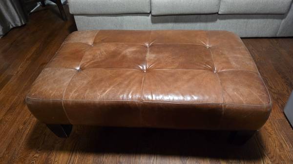 Genuine leather ottoman in good condition. Approximately 48" x 30"
