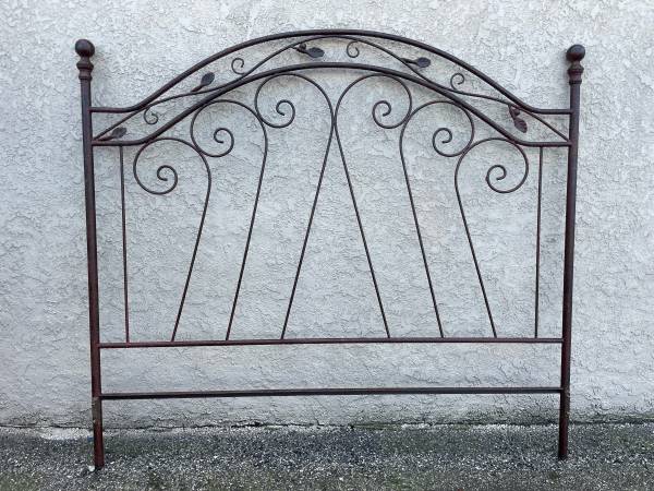 Stunning vintage California king iron bed frame. Complete with headboard, footboard and heavy duty bed frame with great center support. Will last a lifetime. Can deliver.