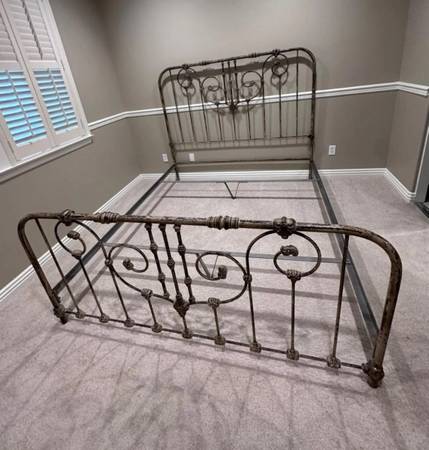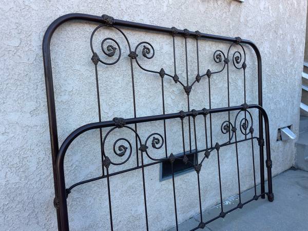 Vintage California king iron bedframe. Made by Wesley Allen. Complete with headboard, footboard and heavy duty bedframe with great center support. Amazing quality ! Absolutely stunning . Can deliver.
