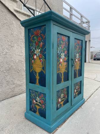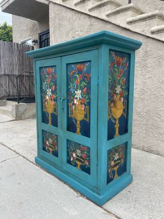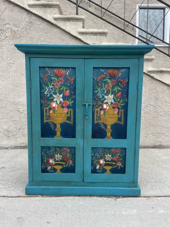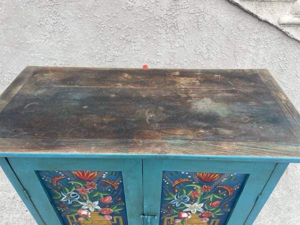 Vintage hand painted solid wood pie safe. Can deliver.  40 wide by 18 1/2 deep by 47 high The actual usable space for the cabinet is 36 wide by 16 1/2 deep