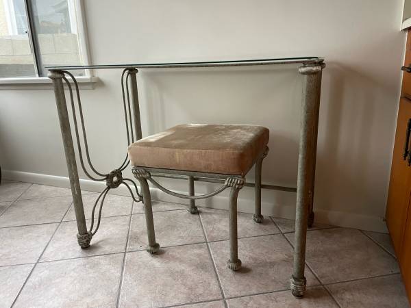 Wesley Allen vanity. Complete with vanity table mirror and stool. Very rare find . 36 wide by 21 deep by 29 high . can deliver.