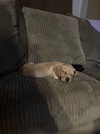 Beautiful male puppy has a beautiful cream color has more dachshund he is long with big ears had colored eyes very sweet for more info text me at