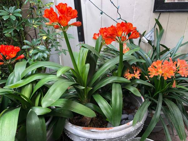 Potted Clivia - Blooms 2 to 3 times a year. Medium Pot - $40 Large Pot - $60 Extra Large Pot - $80 This variety is the more colorful and substantial bouquet.