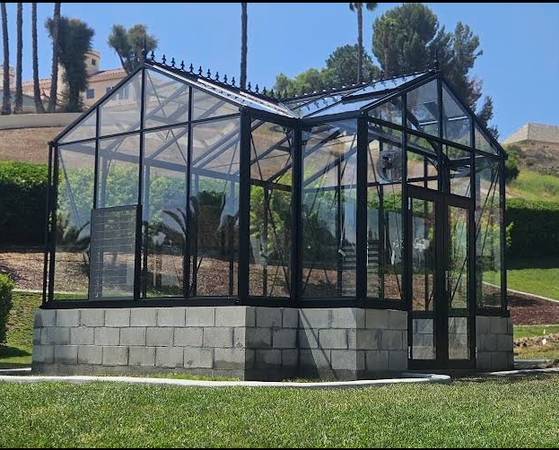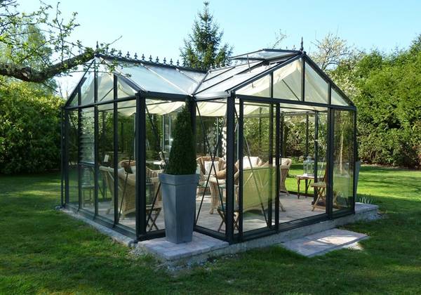 The Royal Orangerie is a great choice for gardeners who want an English style greenhouse with an engaging design. As the full-sized T-shape from Janssens, it is about 1 ½ feet taller than the ‘Junior’ Orangerie and features an entry foyer with a perpendicular work section behind. Like all Janssens greenhouse models its 4mm tempered glass and 17 gauge aluminum frame make it resilient enough to withstand strong wind gusts and moderate hail. Its doors and windows can be installed nearly anywhere, providing substantial flexibility in design. It is especially appreciated by those looking to add a bit of architectural flair to their outdoor space.
