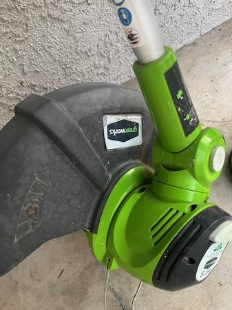 Greenworks 15" string trimmer has a 180 degree rotating handle for edging tasks