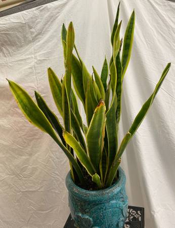 Mother-in-law’s tongue is a hardy, low-maintenance houseplant that even appreciates some neglect. If you are a newbie to caring for houseplants, this one is a great one to start with! Thick, rigidly upright, patterned leaves that grow from thick rhizomes to form 2 foot wide rosettes. Leaves are dark green banded with yellow edges, that can grow 4 feet tall, 2 inches wide. They are native to tropical regions of Africa and are often used as decorative plants due to their unique shape and color.