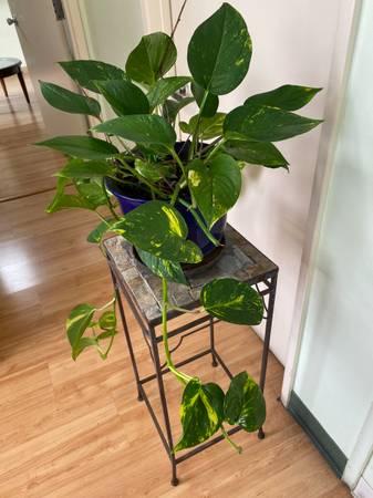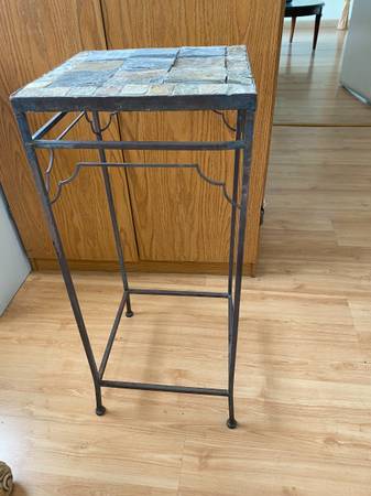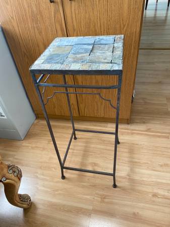 The plant has been displayed with a plant stand with a slate top and sturdy metal base/ legs. 12 x 12 x 26 Available for $15