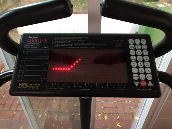 Commercial quality. Good Clean Condition. Includes Power supply and Acrylic Book Holder, Purchased refurbished from StairMaster 20+ years ago and used only a few times.