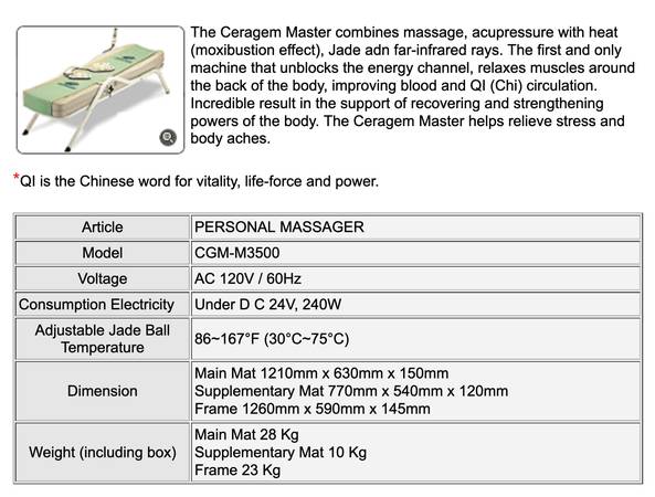 * Ceragem Master Thermal Massage Bed CGM-M3500