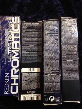 4 unopened tubes, in their boxes, of Redken Ultra Rich ODS chromatics permanent hair color 9AV. $5 per tube.