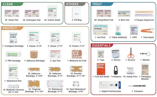 ❤️Complete Configuration: The home first aid kit includes common medical supplies such as a thermometer, antibiotics, ice packs, and burn gel, offering comprehensive equipment to handle minor injuries, illnesses, and emergencies.