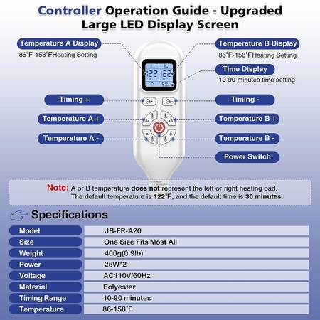 ❤️The heat foot wrap is 86-158℉ temperature adjustable, and 10-90min time setting.
