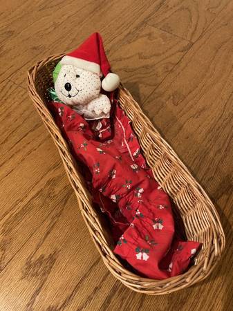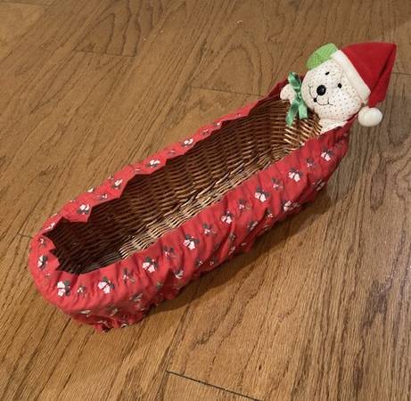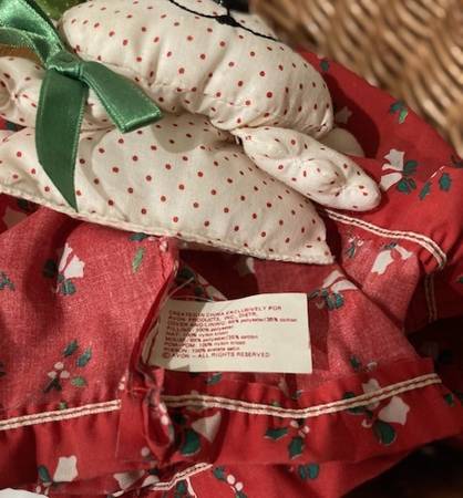The mouse cover has a dark spot on the back of the hat--see photo. Basket seems to be in perfect shape and can be used during the non-Christmas season as well.