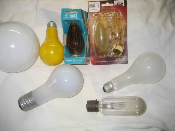 Light fixtures, bulbs and lenses. I have several incandescent fixtures for interior and exterior lights. I also have several exterior quartz lights, for $7 each. In fluorescent light fixtures, I have a 4' fixtures (with 2 bulbs), for $20 each (great for shops). I also have several LED type (4’, 2 bulb) fixtures, for $25 each. They sell at Home Depot, for over $40. I have one 4' (1 bulb) fixture, for $12. In bulbs, I have (10) 6' cool white (55 wt) new bulbs, for $1.50 each. I have used, but good 4' fluorescent bulbs, for 50 cents each. I also have many regular larger light bulbs, such as some vanity bulbs, some colored bulbs and some 300 watt bulbs. I also have (18) 8’ T-8 bulbs, for $3 each. I also have a variety of glass lenses for various fixtures. I also have some special “photo light bulbs” (300-500 watt), for $1 ea. I also have many fluorescent light fixture ballasts. They are Advance-standard VEL-3P32-RH-TP. They are for T-8 fixtures. They will power 3-bulb fixtures with F40, F32 or F25 bulbs. They will also power 2-bulb fixtures with F40 or F32 bulbs. I will sell them for $15 each.