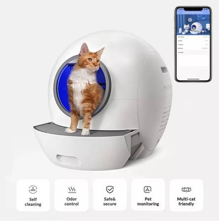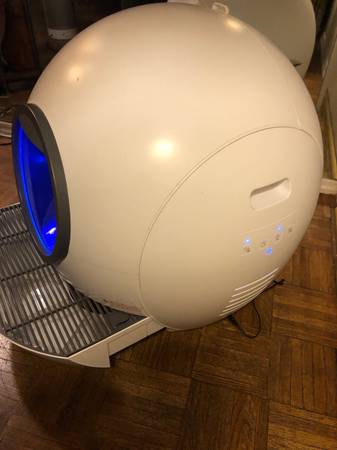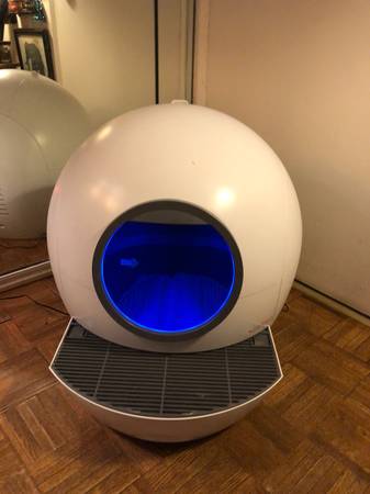 Els Pet Spaceship Automatic Self Cleaning Cat Litter Box. In gently used condition. No more litter scooping or dirty litter box. Has light and timer with closing door. Asking $175 or best offer....