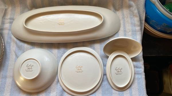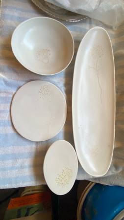 11. Vintage Russel Wright Edwin Knowles QUEEN ANNES LACE Earthenware platter, bowl, plate, gravy bowl - Set of 4 = $50.00 obo