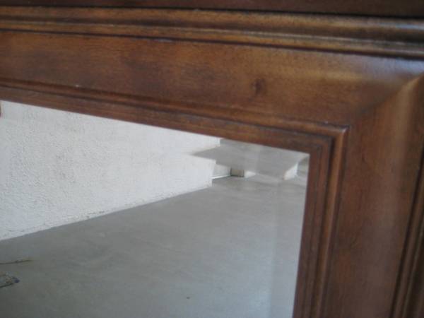 PRICE DROP!!! Now for $25.00 Good quality glass mirror for wall or dresser etc. See the photos to get an idea of this fine piece. = 34 inches by 27 1/4 inches edge of frame to edge of frame. 21...