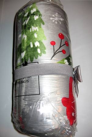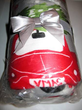 Brand New Christmas Holiday Fleece Throw Blanket with Red Trucks, Presents, Snowflakes, Xmas Trees and more. Comes factory sealed complete with a bow and gift tag.