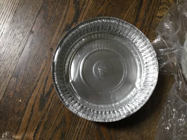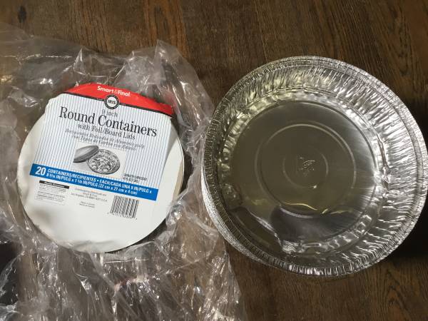 There are 20 nine inch foil containers with foil/board lids and two aluminum containers with clear plastic lids. One of the board lids has some damage to the edges.