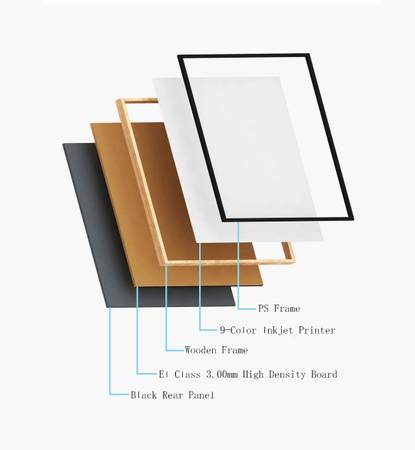 - Stretched canvas on wood frame, ready to hang