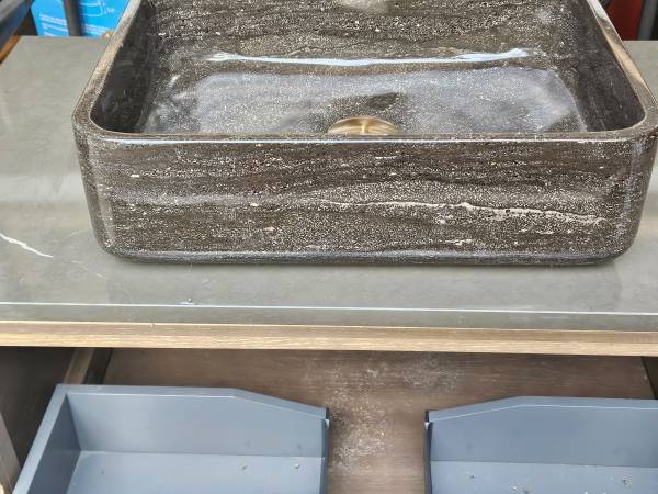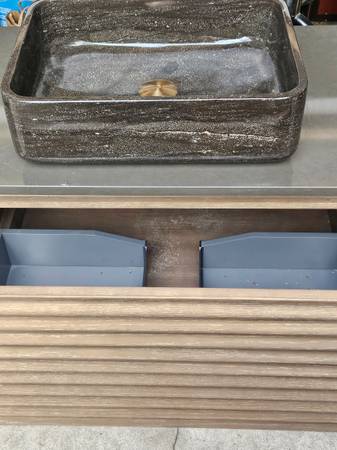 FLOATING BATH. CABINET WITH granite sink and faucet. I paid 1500.00 for it With 35 1/2 by 19 3/4 Hight 18 " 225.00