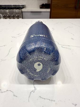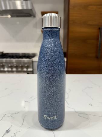 17 oz blue S'well bottle. I just washed it so it may look a little wet on the inside. Fair condition - there's a small finish chip on the bottom and a few scuffs from being stored with other...