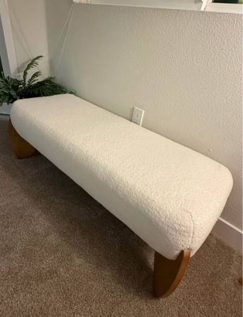 Brand New Boucle Ottoman bench with wooden legs Stylish and elegant, suits very well in living room, bedroom or Hallway