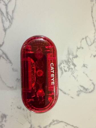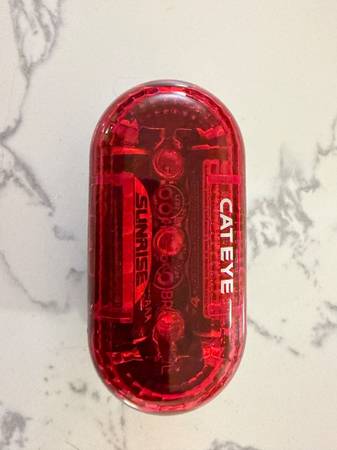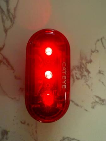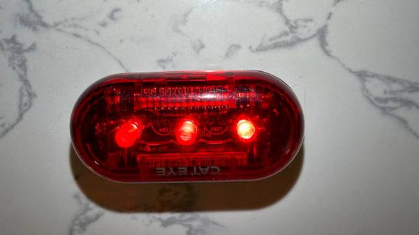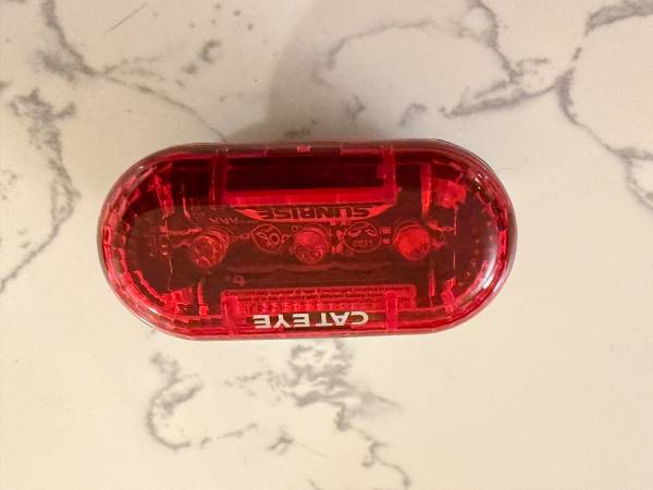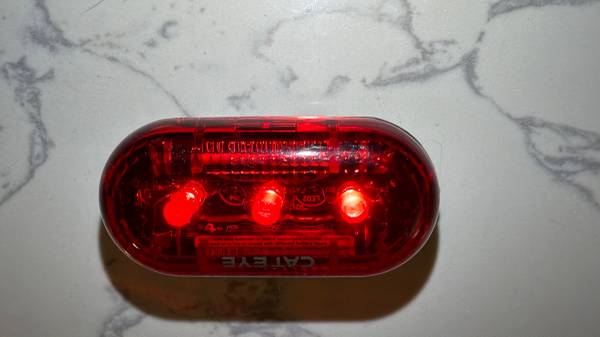Cateye Rear light red with various modes, constant, flashing, high speed alternating flashing.