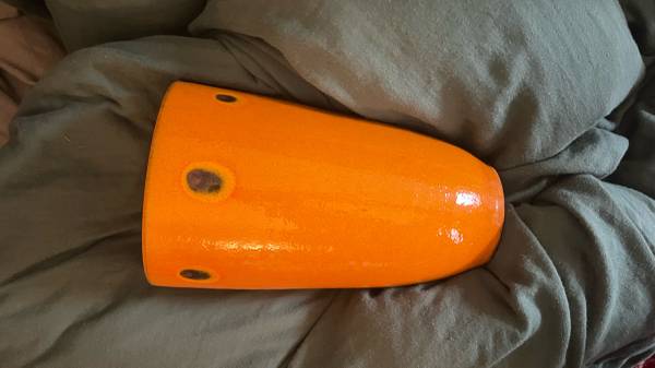 No chips in excellent condition. About 10 in tall by 6 in diameter (top)