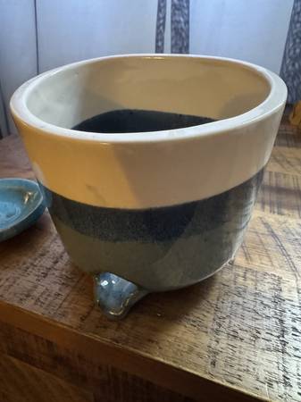 Cute ceramic sponge holder drains water into your sink. Handmade. Great gift! Large, could fit 2-3 regular sponges. Small trinket dish thrown in for free.