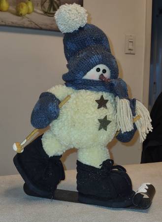 Snowman Skier on Sleigh - ~14" high; like new - still has tag on. $20.00