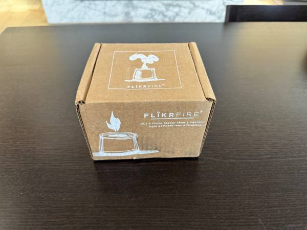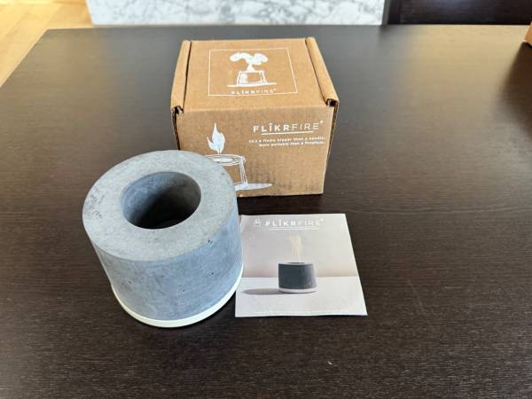 This is a FlikrFire Personal Concrete Fireplace kit that uses isopropyl alcohol as fuel. It is a brand new in the box designed for home use. The fireplace kit is made of concrete and offers a personal and stylish heating option for your indoor or outdoor living space.