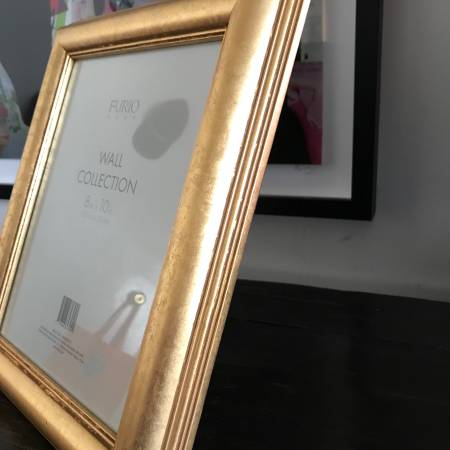 I purchased this with a specific purchase but then didn't do what I had planned. The frame is 11 x 13" and holds a 8 x 10" photo. The back has collected some dust from storage that I'm having a problem removing completely. It might need a lint roller. It's a gorgeous frame.
