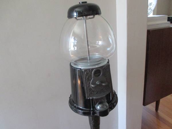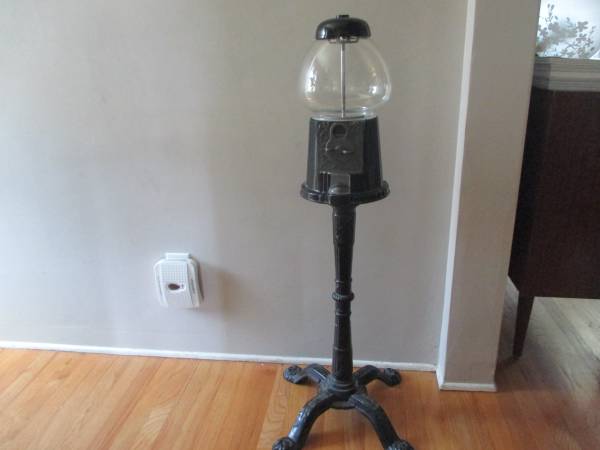 One gum ball dispenser, clean and in great working condition non smoking household. It can be use without pedestal if you wish. Works with quarters. Firm ..yes is available ..